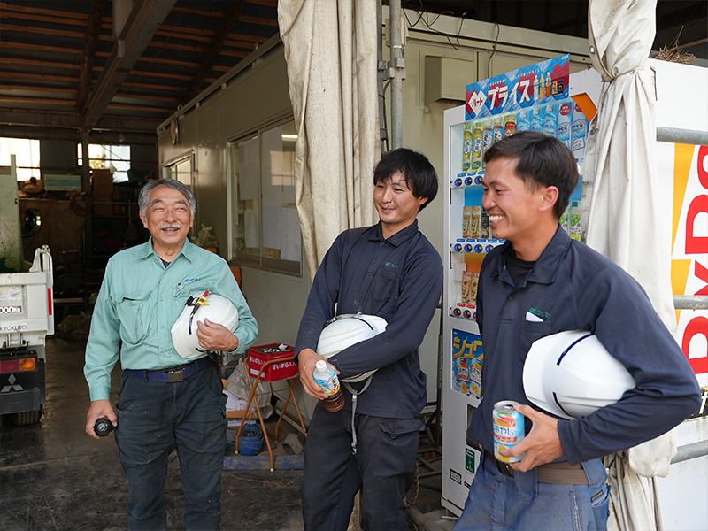 現場では親子三世代が活躍しており、未経験からスタートした社員も多数在籍。分からないことは気兼ねなく聞ける雰囲気で、ベテランの職人たちが丁寧に指導します。